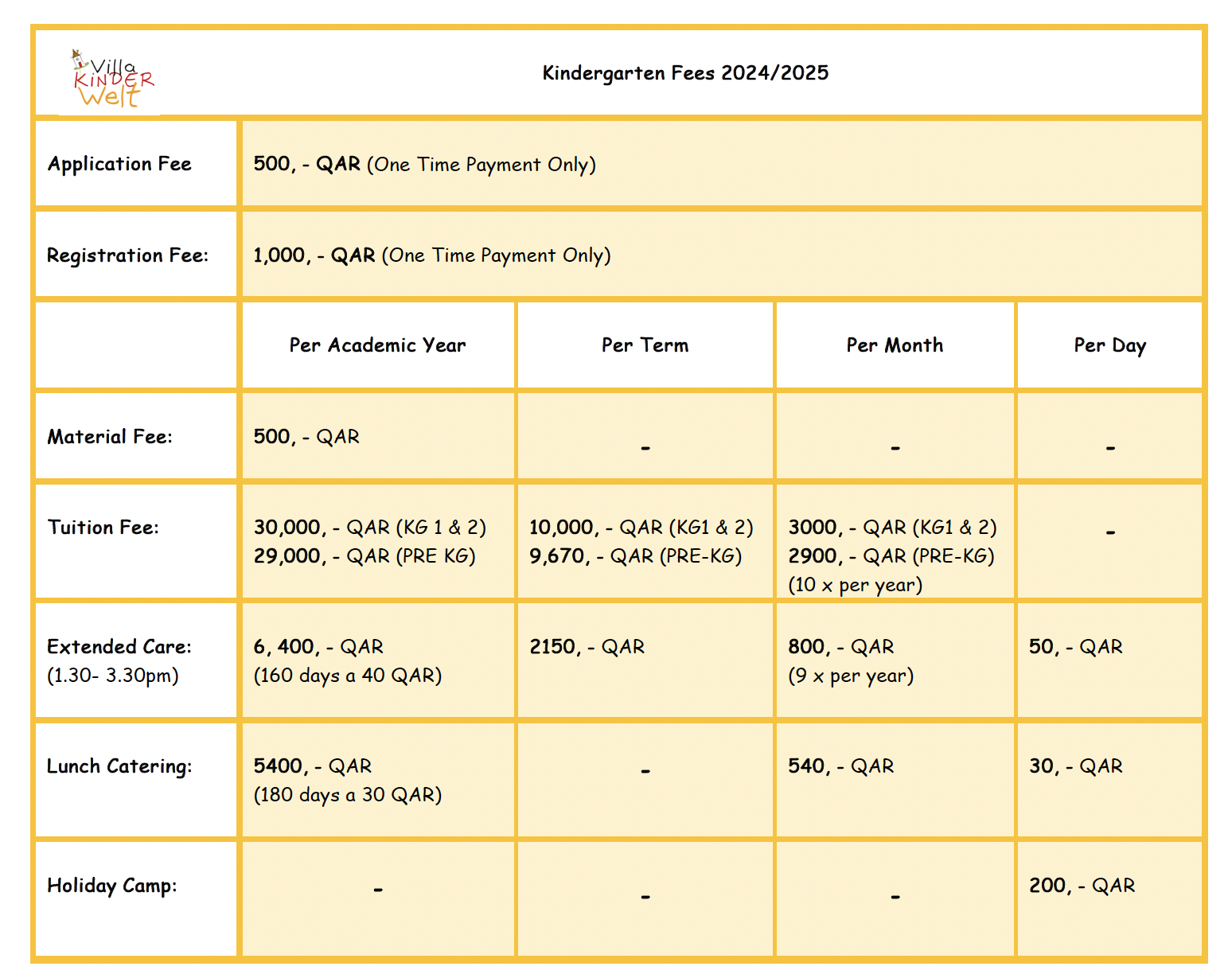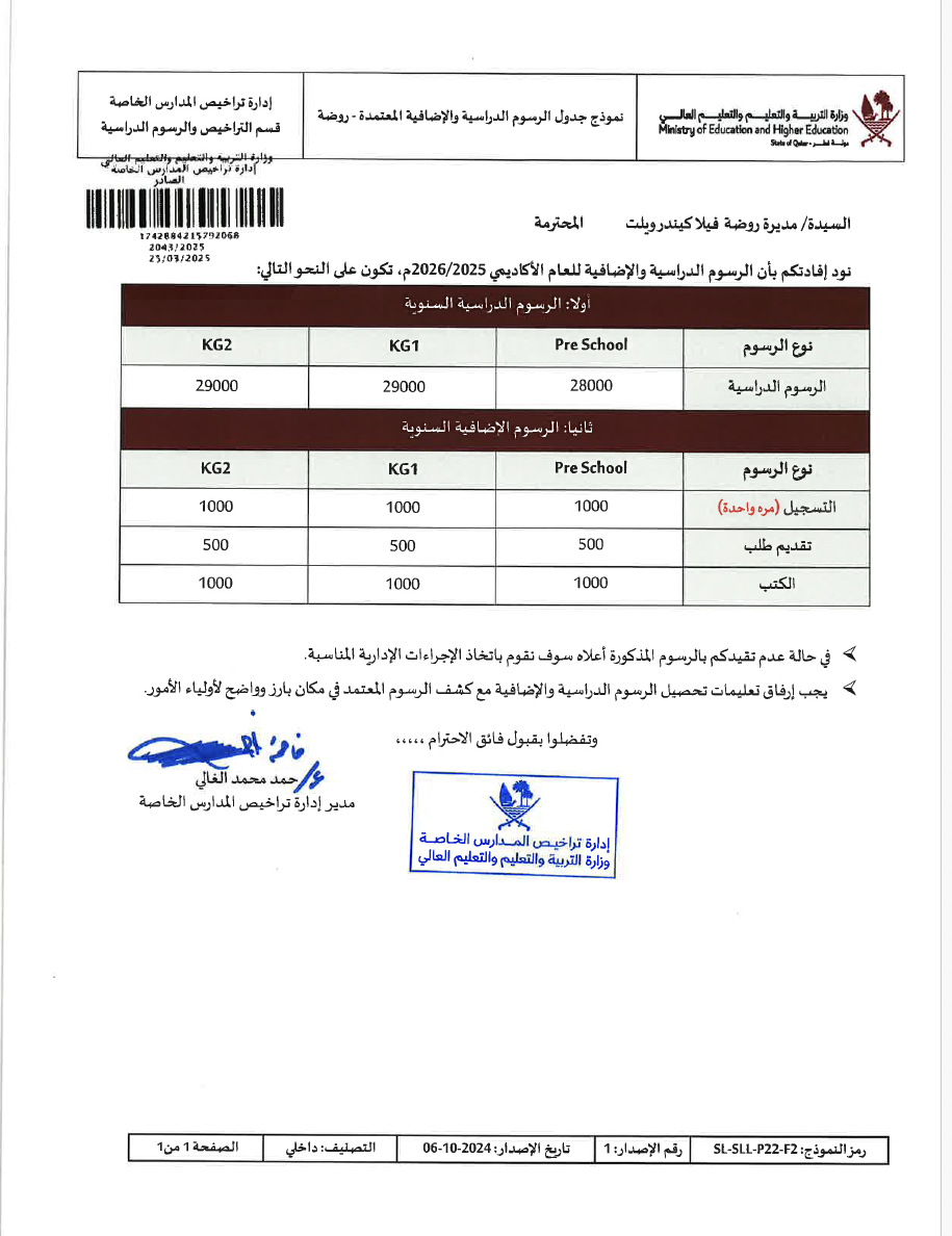 Admissions Written on 20 April 2022. Posted in Uncategorised. Admission & Fees We take in applications for new students and have interviews with interested families continuously throughout the school year. Our basic school fee is 28 000,- / 29 000 QAR per year. Please contact us for more details and to arrange a school tour. Prev Next
